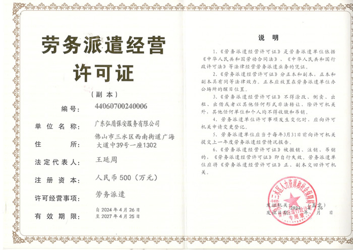 • 勞務派遣經營許可證